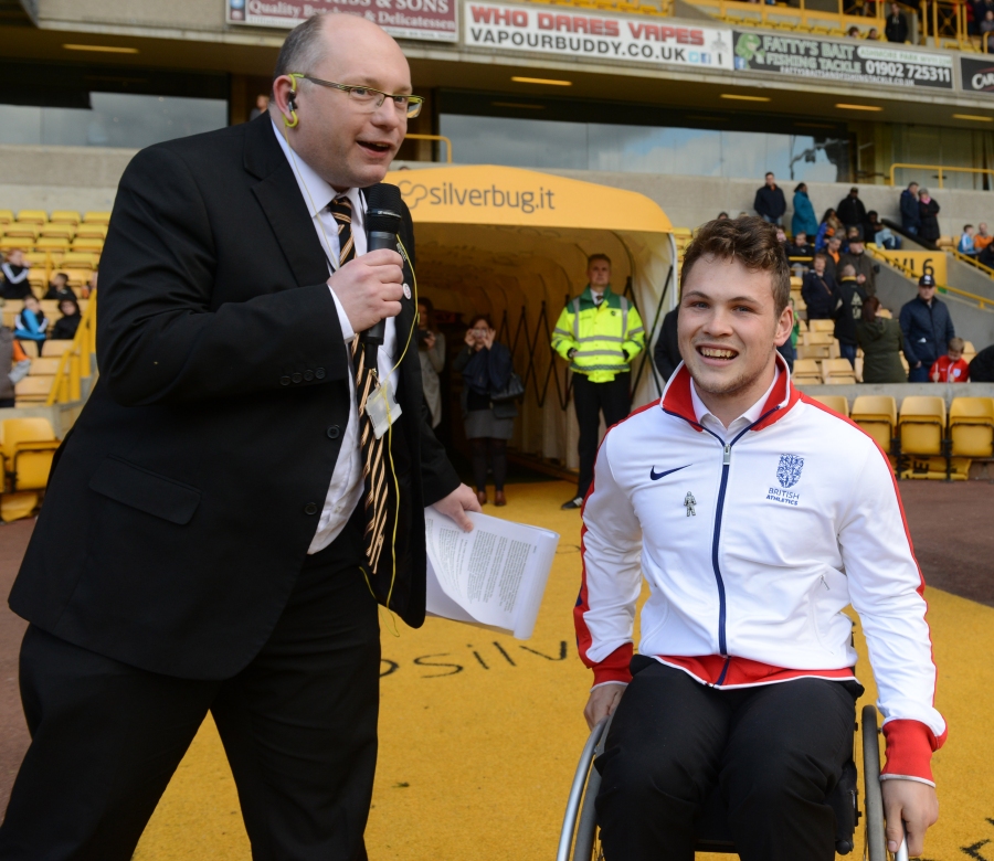 A £16,000 boost for Wolverhampton Wheelchair Sports Club to buy 10 Sports Wheelchairs for local youngsters was celebrated at Molineux Stadium on Saturday April 23rd 2016.