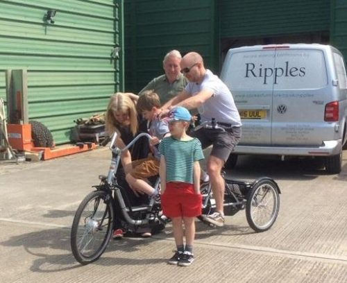 The Trike/Tandem will help us as a family get out all together and will make a massive difference to James’ life. James’ little brother has now learnt to ride his bike and has become excessively fast on it!! in order to keep up with him we have to run with James on the trike, so if we had the Tandem we could all go out as a family together. The main advantage will be that the exercise duration will increase and enable us to maintain his required level of fitness.